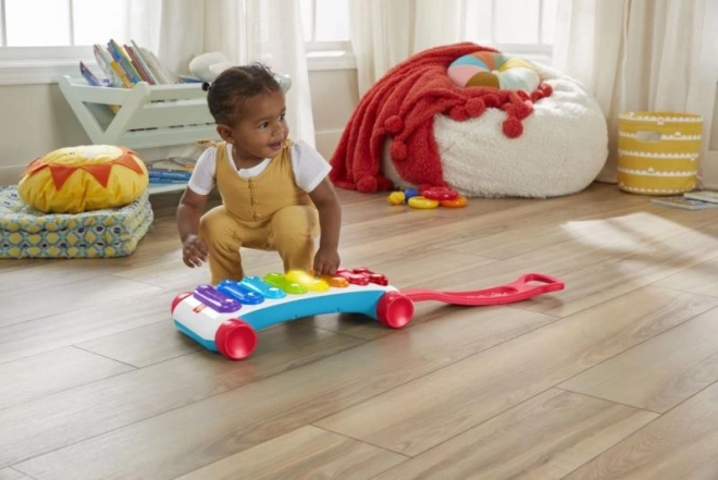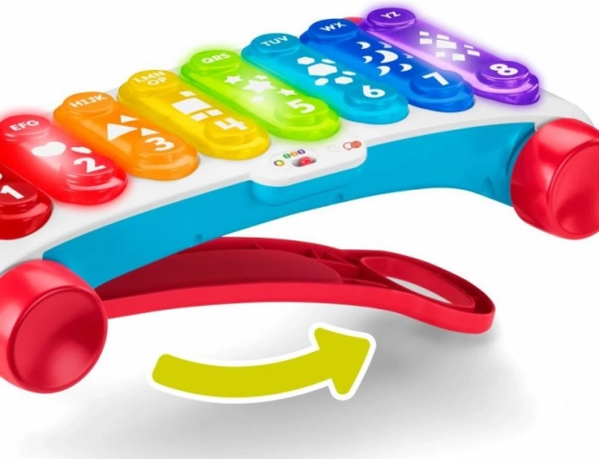 Veľký vzdelávací xylofón od Fisher-Price je nová verzia klasickej hudobnej ťahacej hračky, teraz s ešte väčšou zábavou! Tento mimoriadne veľký interaktívny xylofón ponúka 8 podsvietených tlačidiel, ktoré aktivujú viac než 60 zvukových aktivácií, vrátane rôznych zvukov, piesní a výrokov. Hračka je vybavená pevnou sklopnou rukoväťou, aby sa malí hudobníci mohli hrať v sede aj počas prechádzok s ťahacím xylofónom. Technológia úrovní učenia umožňuje meniť spôsob hry, ako dieťa rastie. Edukačné výrazy a piesne učia okrem iného abecedu, čísla a tvary, ale aj jednoduché slová v angličtine. Stlačte tlačidlo zemegule, aby ste vybrali jazyk: čeština, poľština, maďarčina, slovenčina alebo angličtina.