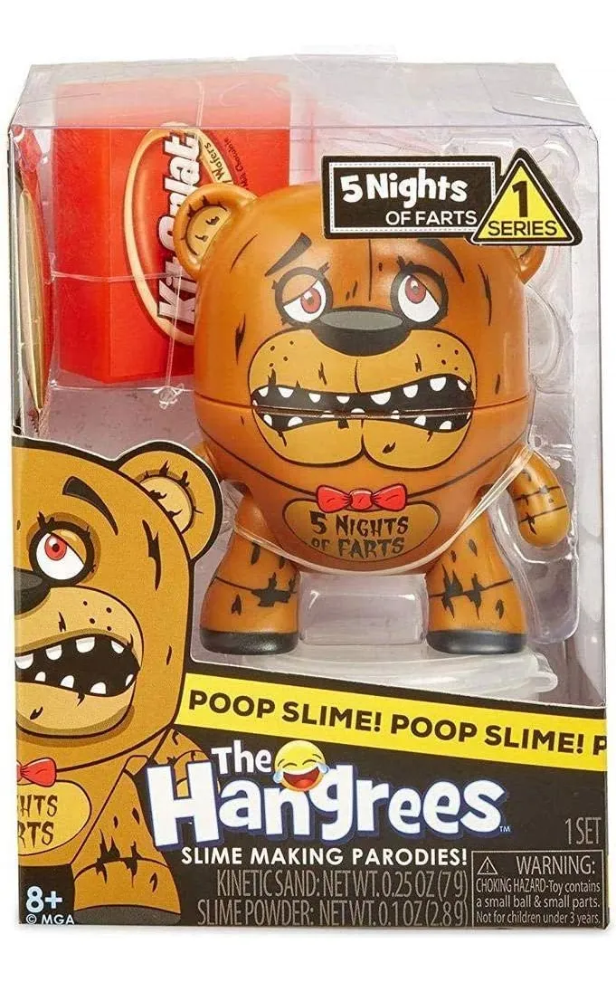 Hangrees Hladovec zo série 1 prináša originálny humor a kreatívnu hru. Dieťa figúrku nakŕmi, pretrasie a počas chvíle vznikne sliz, ktorý možno bezpečne uložiť do priloženej mini toalety. Zábavné doplnky a narážky na známe značky dodávajú hre jedinečný štýl.