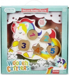 Puzzle v tvare jednorožca pomáha rozvíjať schopnosti detí pri rozpoznávaní tvarov a čísel.