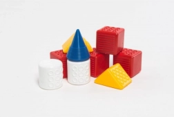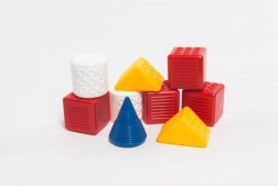 Táto didaktická sada kociek je ideálnou voľbou na prvé stavanie. Vďaka štyrom tvarom a farbám deti spoznávajú farby, tvary a učia sa koordináciu ruka–oko. Kocky sú ľahké, bezpečné a príjemné do ručičky.