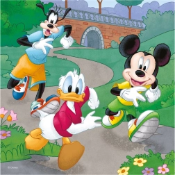 Objavte čaro skladania s obľúbenými postavičkami od DISNEY. Sada troch puzzle po 55 dielikoch prináša športové dobrodružstvá MICKEYHO, MINNIE a ich kamarátov – beh, basketbal aj jazdu na bicykli. Deti si pri skladaní precvičia trpezlivosť, logické myslenie a koordináciu oko–ruka.
