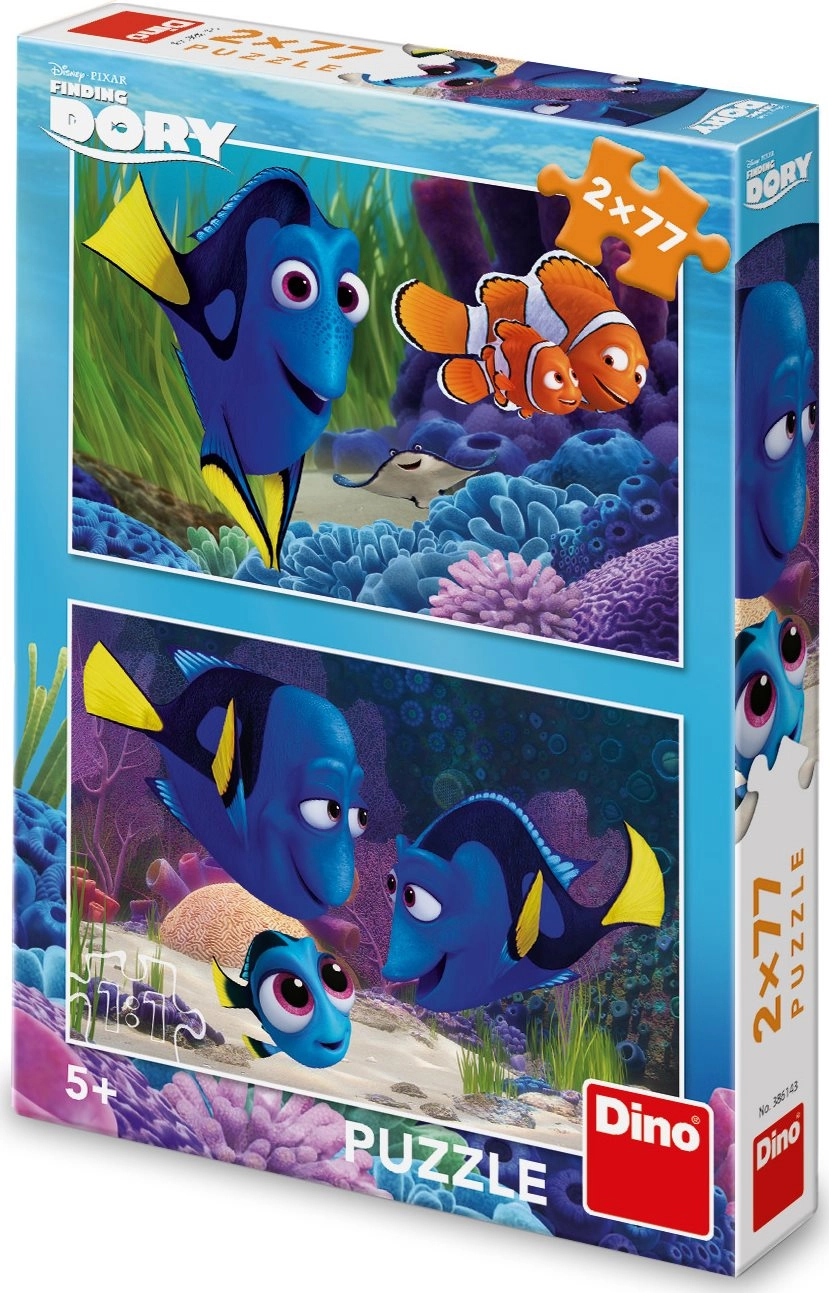 Objavte svet pod morom s puzzle sadou Dino Hľadá sa Dory 2×77. Dva rozdielne obrázky s hrdinami z filmu potešia všetkých malých fanúšikov a zaistia dlhé hodiny kreatívnej zábavy. Dieliky presne lícujú, dobre sa skladajú a odolný kartón zvládne aj časté používanie.