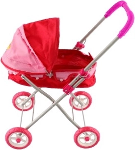 Elegantný hlboký kočík pre bábiky s kombináciou látky a kovu. Ideálny pre deti, ktoré milujú hrať sa so svojimi bábikami a brať ich na prechádzky.