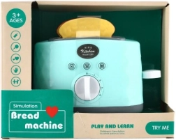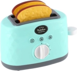 Toustovač v tyrkysovej farbe s realistickými funkciami tlačidiel a mechanikou pre zapojenie detského záujmu.