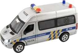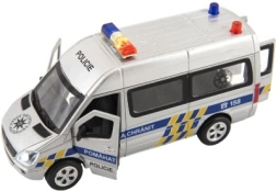 Robustné policajné autíčko z kovu s plastovými doplnkami poteší všetkých malých strážcov poriadku. Ponúka svetelné a zvukové efekty, spätné natiahnutie pre rýchly štart, otváracie dvere a dodáva sa s batériami v balení.