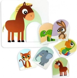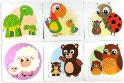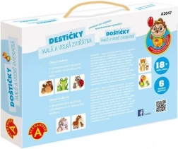 Táto jednoduchá náučná hra je ideálna na prvé učenie formou hry. Deti priraďujú malé a veľké zvieratko, skúmajú tvar, správne natočenie a vkladajú vyberateľné dieliky do zodpovedajúcich otvorov na doštičkách. Každý správne spárovaný pár posilňuje sebaistotu a chuť objavovať.