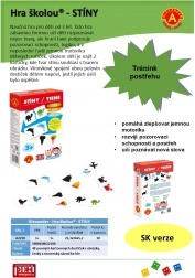 Hra školou – tiene je kreslená náučná hra, v ktorej deti hľadajú a skladajú dvojice tvorené tieňom a zodpovedajúcim farebným obrázkom. Zostavte všetkých 24 párov ako puzzle, spoznávajte tvary, pomenúvajte zvieratká a hudobné nástroje a rozprávajte sa o nich. Hra rastie s dieťaťom – od jednoduchého priraďovania až po zvedavé otázky a hľadanie súvislostí.