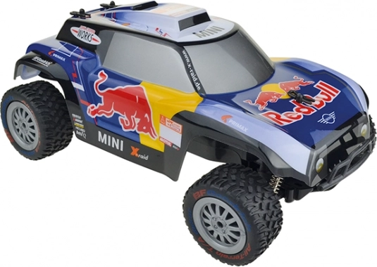 Štýlový RC model inšpirovaný pretekárskym špeciálom X-Raid MINI JCW Buggy s ikonickým RED BULL polepom ponúka svižnú a stabilnú jazdu. Vďaka modernej frekvencii 2,4 GHz si bez problémov zasúťažíte s kamarátmi na jednej trati – bez kríženia signálov a výpadkov.