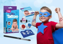 Väčšie sady obsahujú viac nástrojov: Pohyblivé oči/samolepiace kamienky: Hotový vzor môžete prizdobiť. Naneste malé množstvo lepidla na samolepiace kamienky a pritlačte ho na pokožku.
