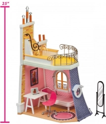 Domček poskytuje dvojpodlažný priestor s malými figúrkami a dekoráciami ako posteľ, stôl a zrkadlo. Zábava z nápaditej hry je zaistená.