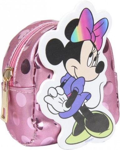 Hravý prívesok s ikonickým motívom MINNIE MOUSE kombinuje rozkošný dizajn a užitočnosť. Mini batôžtek s lesklým povrchom a farebnou mašľou ponúka drobný úložný priestor na mince, slúchadlá alebo malé poklady. Vďaka zipsu všetko bezpečne drží vo vnútri.