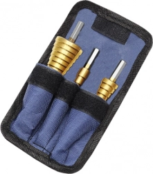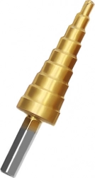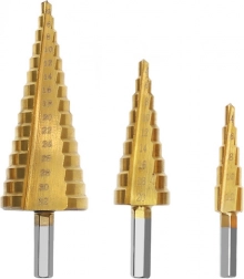 Stupňovité vrtáky sú ideálne na rýchle vytváranie rôznych priemerov jedným nástrojom. Vďaka viacerým stupňom na každom vrtáku jednoducho rozšírite otvor na požadovanú veľkosť bez výmeny nástroja. Titánový povlak znižuje trenie, zvyšuje životnosť a zlepšuje kvalitu rezu.
