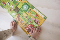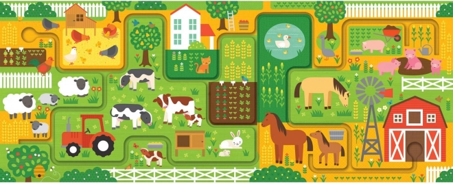 Zábavné a vzdelávacie puzzle pre najmenších. Poskladajte 10 veľkých dielikov a vydajte sa prstom po bludisku naprieč farmou. Deti pri hre rozvíjajú jemnú motoriku, sústredenie a postreh, keď hľadajú 20 rôznych predmetov na obrázku. Puzzle je vyrobené z recyklovaného papiera a potlačené farbami na rastlinnej báze, spĺňa prísne bezpečnostné štandardy a je ideálne pre deti od 2 rokov.