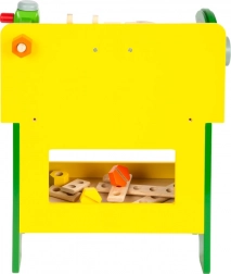Pevná konštrukcia z kvalitného dreva s farebným lakom zaručuje stabilitu a dlhú životnosť. Ponk je navrhnutý s dôrazom na bezpečnosť a zábavné učenie – ideálna hračka na rolové hry, rozvoj technického myslenia a predstavivosti.