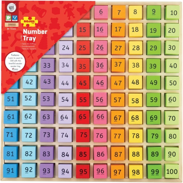 Bigjigs Toys prinášajú zábavu a vzdelávanie s ich drevenými číslami v zásobníku. Táto hračka je určená pre deti od 3 rokov a je ideálna pre rozvoj počítacích zručností. Obsahuje 100 dielikov, čísla od 1 do 100, ktoré sú farebne odlíšené, čo podporuje rozpoznávanie čísel a farieb.