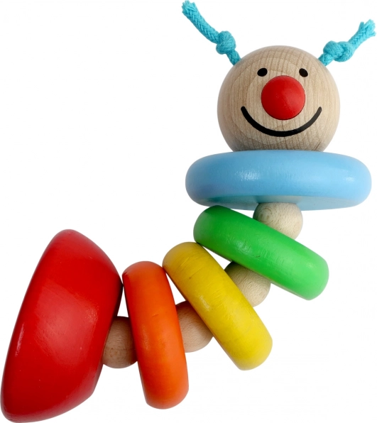 Táto farebná drevená húsenka je ideálna prvá hračka pre najmenších. Vďaka prepojeniu dielikov na gumičke sa ľahko ohýba, krúti a vracia späť, čo deti motivuje k aktívnemu skúmaniu a tréningu koordinácie rúk a očí. Kompaktná veľkosť skvele padne do detskej rúčky.