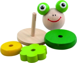 Hojdacia pyramída žabáková je skvelá drevená hračka na rozvoj motoriky a predstavivosti malých detí. Skladá sa zo 4 navliekacích dielov a jedného základného dreveného dielu s tyčkou, vďaka čomu zábavne poskakuje a točí sa.