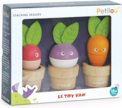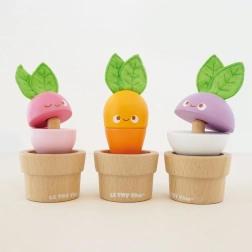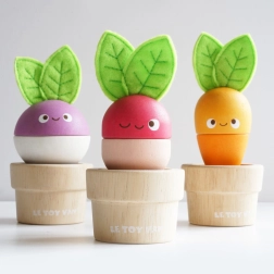 Rozkošná sada drevených kvetináčikov so zeleninou od LE TOY VAN podporuje jemnú motoriku, koordináciu ruka–oko aj predstavivosť. Deti môžu mixovať a skladať jednotlivé diely do mrkvy, reďkovky a repy alebo vytvárať vlastné kombinácie. Hračka je vyrobená z udržateľného dreva, má plstené lístky a je ručne domalovaná netoxickými farbami na vodnej báze.
