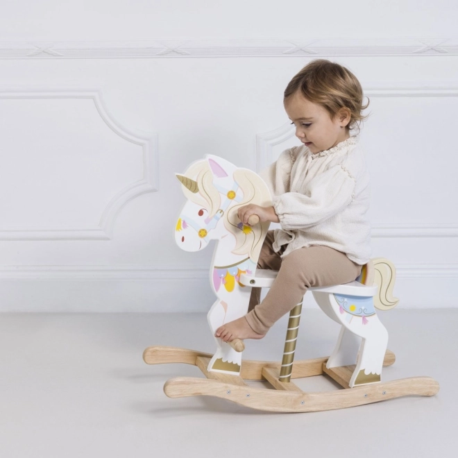 Hojdací jednorožec LE TOY VAN z kolekcie Petilou je klasická hračka v modernom poňatí. Vďaka pevnému drevenému základu a premyslenej ergonómii podporuje prirodzené hojdanie, rozvíja koordináciu, rovnováhu a istotu v pohybe. Bohaté farebné detaily, zlatý roh a milý výraz podnecujú fantáziu aj radosť z hry.