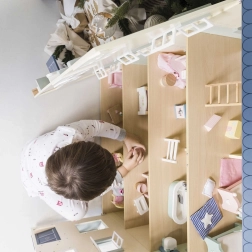 Domček je ručne domalovaný ekologickými, vodou riediteľnými farbami a vyrobený z vysoko kvalitného dreva z udržateľných a obnoviteľných zdrojov. Podporuje predstavivú hru, rozvíja koordináciu ruka–oko a vďaka rodovo neutrálnemu dizajnu poteší všetkých malých staviteľov príbehov. Kompatibilný s nábytkom, bábikami a doplnkami z kolekcie Daisylane. Nábytok a bábiky nie sú súčasťou balenia.