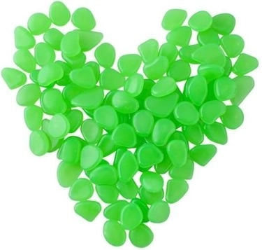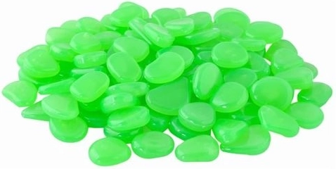 Tieto fluorescenčné kamienky z kvalitného plastu sa cez deň nabíjajú UV svetlom a po zotmení vyžarujú príjemný žiarivý efekt. Majú jemne zaoblené a leštené hrany, sú netoxické a vhodné aj na použitie v akváriách.