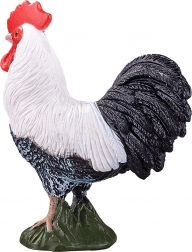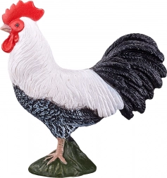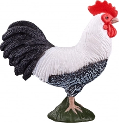 Verno tvarované perie, kontrastné čiernobiele sfarbenie a červený hrebeň pre autentický vzhľad kohúta.