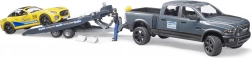 - Terénny pick-up RAM, príves, žlté športové auto, figúrka vodiča, prídavný volant