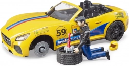 Žltý športiak s číslom 59 a odnímateľnou strechou prináša pretekársky vzhľad aj funkcie. Ideálne pre servisné aj pretekárske scenáre.
