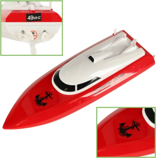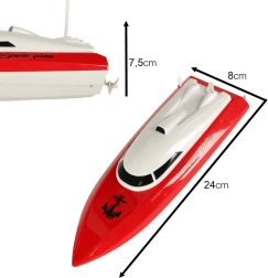 Tento malý, ale svižný RC čln ponúka intuitívne ovládanie a stabilnú jazdu na pokojnej vodnej hladine. Vďaka odolnému plastovému trupu a premyslenej aerodynamike je model skvelo ovládateľný a vhodný pre deti. Napájanie zabezpečuje akumulátor Ni‑Cd 3,6 V 500 mAh, ktorý poskytuje približne 7–8 minút jazdy na jedno nabitie.