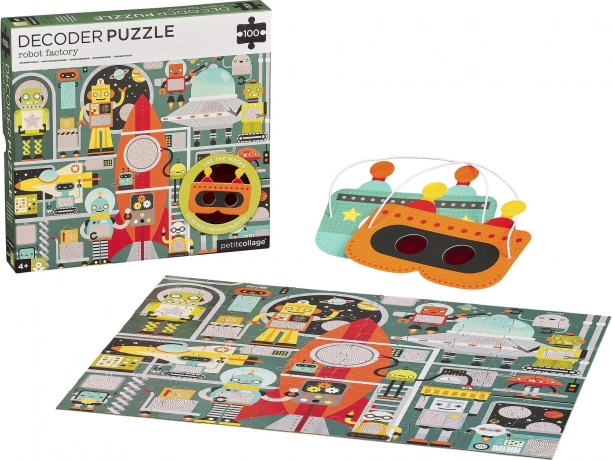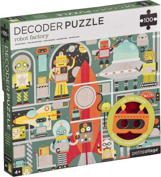 Vstúpte do sveta robotov a ich továrne! Zostavte 100-dielne puzzle a pomocou špeciálnej dekódovacej masky objavujte skryté detaily potrebné na dokončenie kozmickej lode. Tento chytrý doplnok premení skladanie na interaktívnu hru, ktorá rozvíja logiku, postreh a jemnú motoriku.