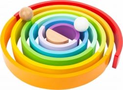 14 farebných oblúkov možno skladať do dúhy, mostov, tunelov aj veží. Deti si trénujú rovnováhu a predstavivosť pri každej novej kombinácii.