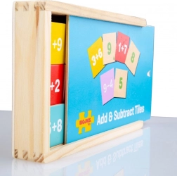 Drevená edukačná sada s 81 hracími dielikmi ponúka pestré možnosti precvičovania sčítania a odčítania v rozsahu 1–9. Vďaka kompaktnej krabičke je ideálna na doma, do škôlky aj na cesty. Deti si formou hry upevnia základné početné zručnosti a zároveň rozvíjajú koordináciu ruky a oka.