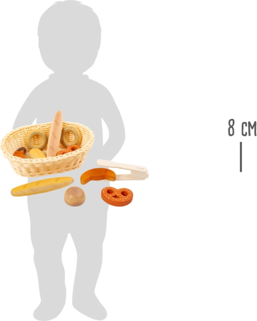 Objavte čaro hry na pekárstvo s touto kvalitnou drevenou sadou pečiva od Small Foot. Set obsahuje pletenú ošatku, kliešte a rozmanitý výber pečiva ako bagetky, praclíky, rožky či donuty – ideálne pre detskú kuchynku aj obchod. Podporuje hraní rolí, jemnú motoriku a komunikáciu.