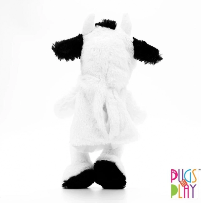 Roztomilá maňuška kravička od značky PUGS AT PLAY poteší všetkých malých milovníkov zvieratiek. Vďaka otvoru na ruku ľahko ovládate pohyby a zvuk tlamičky, čo z maňušky robí zábavného spievajúceho kamaráta. Je vyrobená z mäkkého a hebkého plyšu, ktorý je príjemný na dotyk, a hravou formou rozvíja jemnú motoriku, kreativitu a slovnú zásobu. Výška cca 32 cm (rozmery cca 14 × 14 × 32 cm). Batérie 3× AG13 sú súčasťou a nie sú určené na výmenu. Údržba: ručné pranie do 30 °C.
