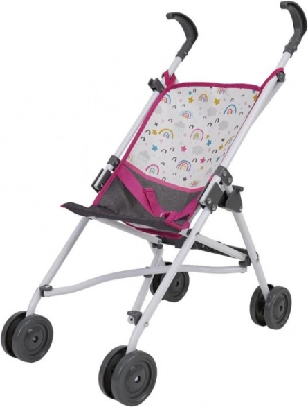 Hravý a praktický kočík pre bábiky typu golfových palíc v dúhovom prevedení poteší každú malú mamičku. Je vhodný pre bábiky do cca 46 cm, má výšku rukoväte cca 54 cm a vďaka skladacej konštrukcii sa ľahko prenáša aj odkladá. Ideálny pre deti od 3 rokov.