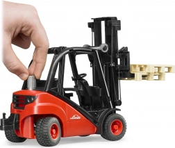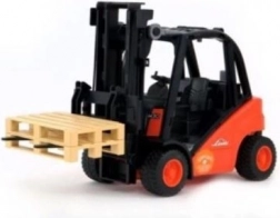 Model disponuje realistickým ovládaním – zdvíhací stožiar plynulo zdvíha a spúšťa vidlice, ramená sa nakláňajú a zadná náprava je riadená pre ľahké manévrovanie. Súčasťou balenia sú dve palety na okamžitú hru a nakládku. Konštrukcia z kvalitného plastu zaručuje dlhú životnosť a bezpečné používanie.