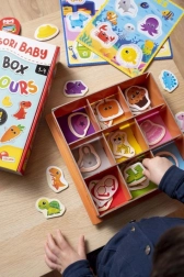 Táto farebná vkladacia krabička vychádza z princípov metódy MONTESSORI a vedie deti k samostatnému objavovaniu a triedeniu. Deti pri hre vkladajú a priraďujú prvky podľa farieb, čím si nenásilne rozvíjajú zmyslové vnímanie, súčasne trénujú sústredenie a získavajú radosť z každého správneho zaradenia.
