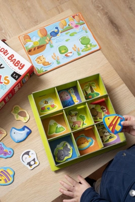 Montessori krabička Zvieratká prináša deťom pestrý svet prírody formou jednoduchého triedenia a priraďovania. Deti sa učia rozlišovať zvieratá a ich prirodzené prostredie, rozvíjajú logické myslenie a koordináciu oko–ruka. Vďaka farebnému a intuitívnemu spracovaniu si hru rýchlo osvoja aj tí najmenší.