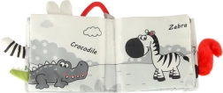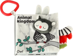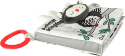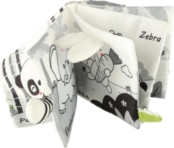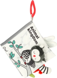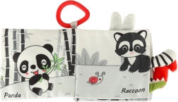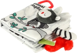 S touto mäkkou knižkou v kontrastných farbách sa vaše bábätko vydá objavovať svet zvieratiek – od sovy cez opičku a pandu až po mývala, slona, krokodíla či zebru. Čiernobiele a červené prvky podporujú skorú vizuálnu stimuláciu, zatiaľ čo rôzne textúry a interaktívne prvky rozvíjajú jemnú motoriku a koordináciu oko–ruka. Každá strana nesie anglické názvy zvierat, čo prirodzene podporuje aj prvú slovnú zásobu.