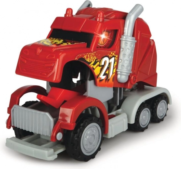 Kabína ťahača sa v okamihu premení na draka, ťahač na spätný chod, so zvukovým efektom, s blikajúcim svetlom. 3 druhy – červený, modrý alebo zelený. Veľkosť 12,5 cm.