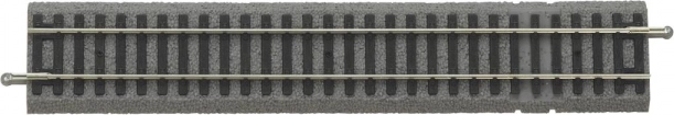 Piko rovná koľaj s realistickou reprodukciou drevených podvalov a štrkovým podložím, kompatibilná s analógovým aj digitálnym systémom.