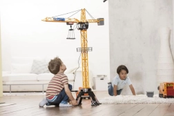 Postavte si vlastné stavenisko doma! Tento vežový žeriav s výškou 120 cm ponúka otočný rozsah 350°, drôtové diaľkové ovládanie a funkčný lanový navijak na zdvíhanie a spúšťanie bremien. Súčasťou je príslušenstvo a otvorená kabína pre figúrku cca 7,6 cm (nie je súčasťou). Ideálne na kreatívnu hru a rozvoj jemnej motoriky detí od 3 rokov.