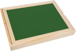 Doska ponúka dve variabilné plochy - bielu na písanie fixkou a čiernu na kreslenie kriedou, čo umožňuje rôzne spôsoby kreatívnej hry.