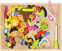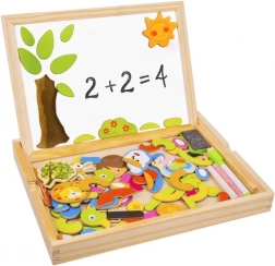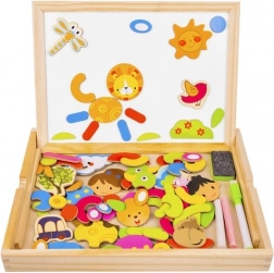Vďaka rôznym magnetickým tvarom a brožúre s príkladmi môžu deti trénovať a rozvíjať svoje rozpoznávacie a kreatívne schopnosti.