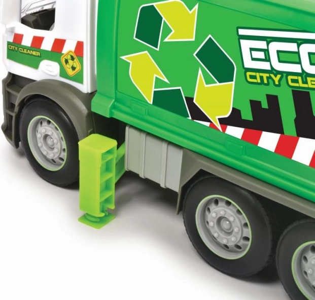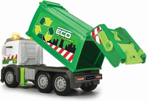 Vďaka licencovanému dizajnu Mercedes‑Benz a odolnému plastovému prevedeniu je hračka ideálna na každodenné hranie doma aj vonku. Podporuje rozvoj jemnej motoriky, predstavivosti a učenie sa o triedení odpadu a starostlivosti o životné prostredie.