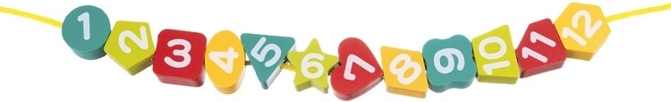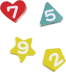 Súčasťou je šnúrka s dreveným úchopom. Navliekanie číslic precvičí trpezlivosť, sústredenie aj obratnosť prstov.