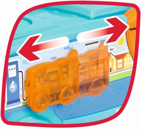 Otváracie dvere a bočný pohyblivý prvok pozývajú k objavovaniu a realistickému hraniu na mestskú dopravu. Pevné plastové prevedenie je odolné a bezpečné na každodenné hranie doma aj na cestách.
