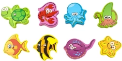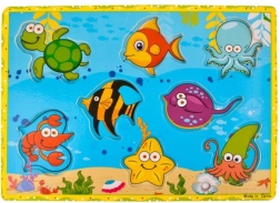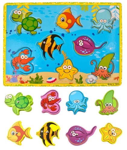 Hračka je vyrobená z kvalitného dreva s hladkými hranami a spĺňa bezpečnostné normy CE a EN 71. Zaujme živými farbami a milými ilustráciami, ktoré deti prirodzene motivujú k opakovanému hraniu a objavovaniu podmorského sveta.