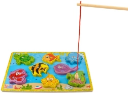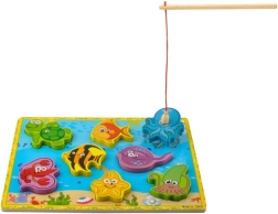 Deti najprv priraďujú tvary do výrezov a následne sa zahrajú na rybárov s magnetickým prútom. Dvojitá porcia zábavy aj učenia v jednej hračke.