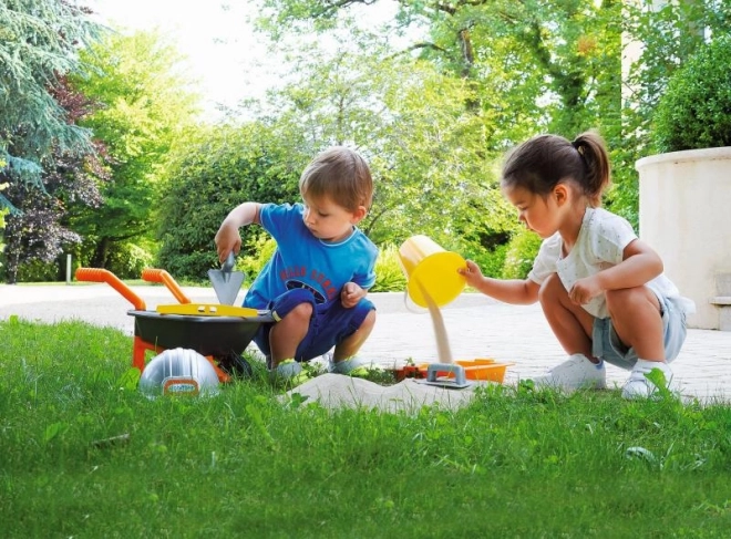 Zábavná a odolná múrarská sada do pieskoviska s 8 kusmi náradia pre malých staviteľov. Obsahuje táčko, vedierko, vodováhu, skladací meter, múrarskú lyžicu, hladidlo, misku a pracovnú prilbu – všetko pre kreatívne stavanie z piesku aj hry na stavenisku.
